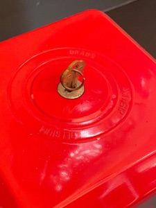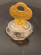 Ici un bel exemple avec sa cléf et serrure d’origine , ce qu’il y a de bien avec ce distributeur c’est qu’on peut changer le type d’aliment distribué facilement car le selectionneur de quantité se règle sous plusieurs positions pré-définies .